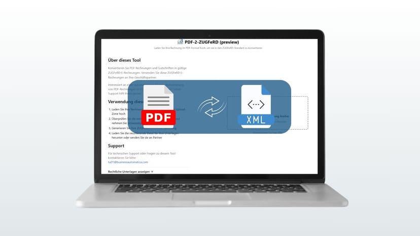 Mit unserem ZUGFeRD E-Rechnung-Konverter rüsten Sie Ihr Unternehmen frühzeitig für die digitale Zukunft. Steigern Sie Ihre Effizienz, minimieren Sie Fehlerquoten und maximieren Sie die Produktivität Ihrer Buchhaltung – und das alles gesetzeskonform.